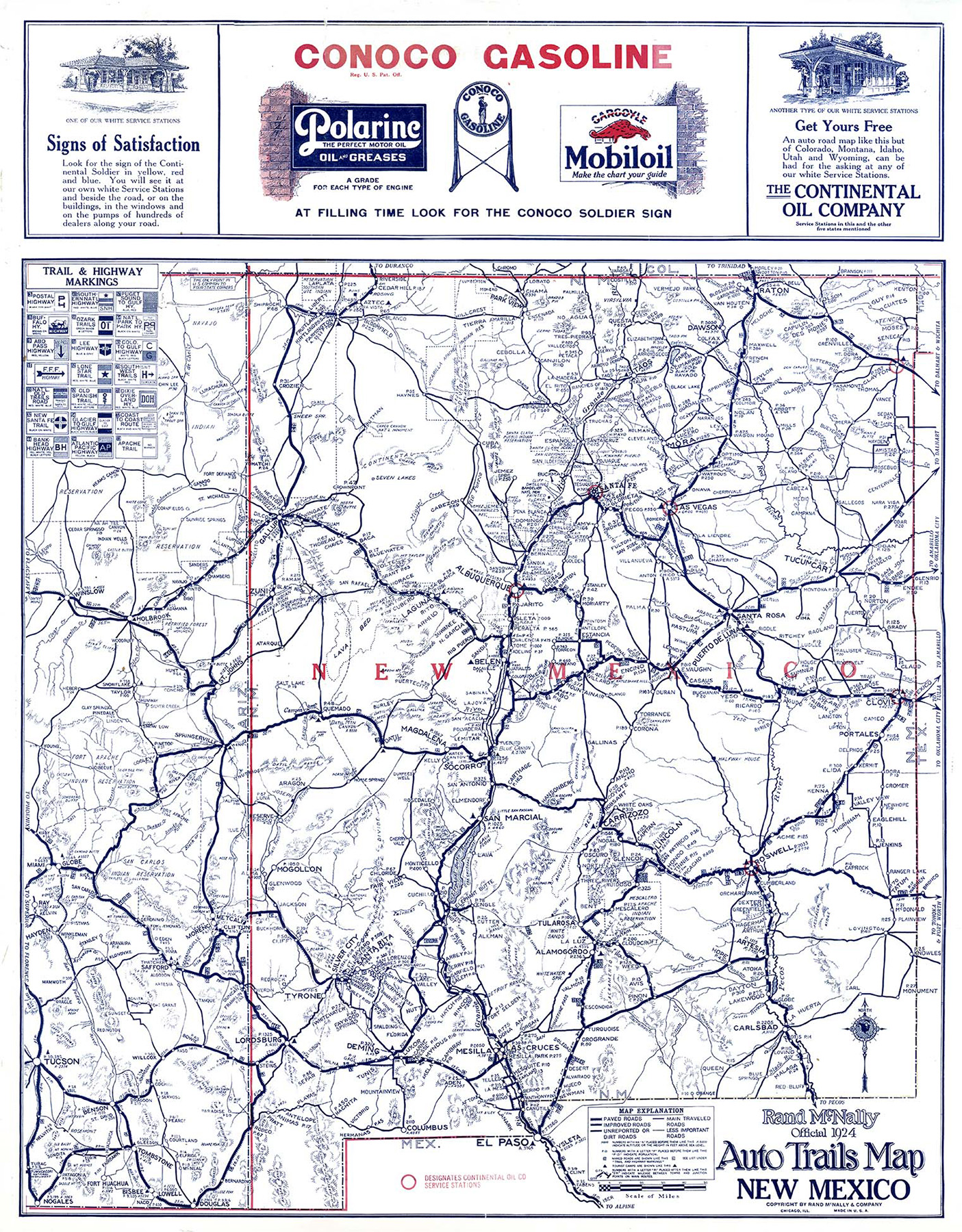 1924 New Mexico Conoco highway Map print