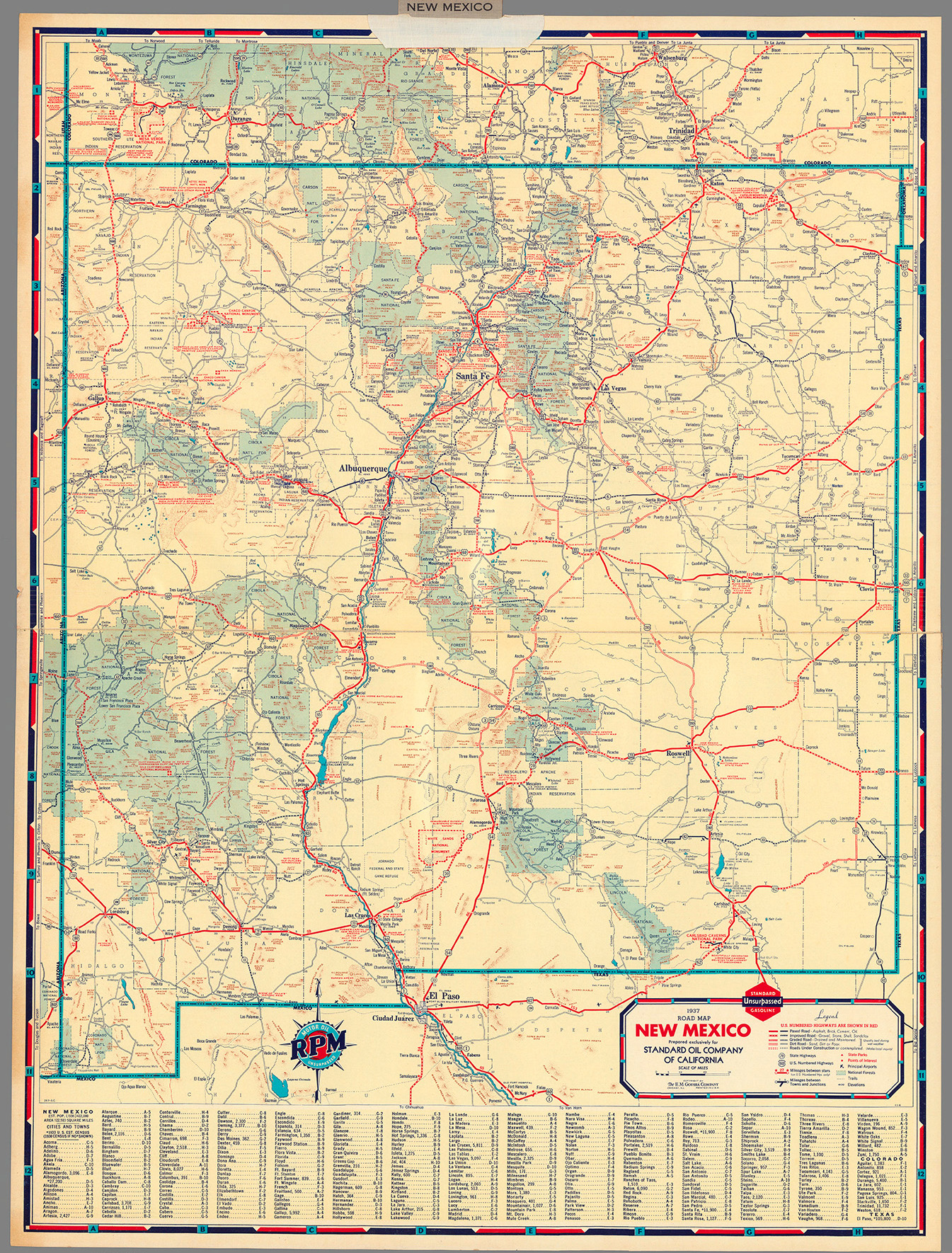 1937 Standard Oil NM State Map print